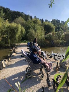 Klienti si společně s personálem užili krásnou podzimní vycházku na Smraďavku. Prošli se kolem rybníka, kde nakrmili kačeny a labutě, poseděli na lavičkách a vychutnali si poslední teplé sluneční paprsky. Atmosféra byla pohodová, plná úsměvů a příjemných rozhovorů.