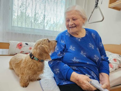 Minimálně 1x měsíčně dochází do Domova pes s canisterapeutickým výcvikem, který je klientům polohován do lůžka a ti si tak mohou užít zpravidla 20 min jeho výlučné přítomnosti. V domově jsou vítány také návštěvy dalších psů, kteří vykouzlí úsměv na rtech.