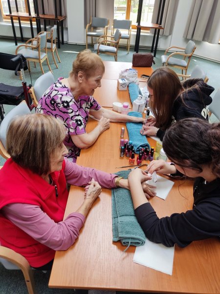 Dne 16.4.2026 se v Domově seniorů v Uherském Hradišti uskutečnil Den krásy. Naši klienti si mohli dopřát péči v podobě stříhání vlasů , lakování nehtů a úpravy obočí, o kterou se s laskavostí postaraly studentky oborů kadeřnice a kosmetika