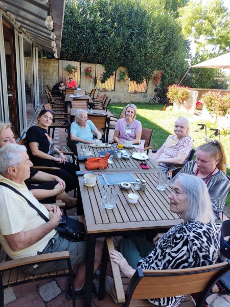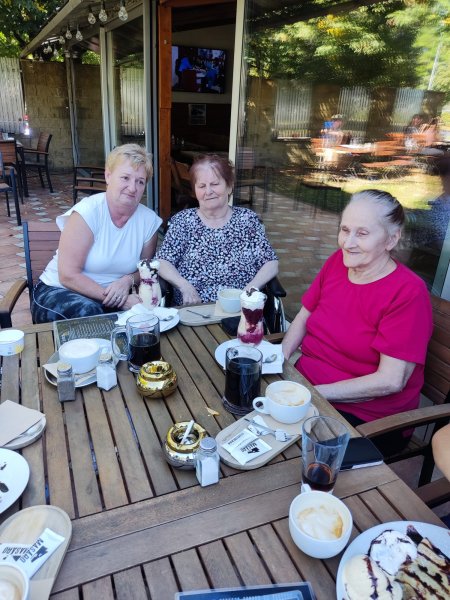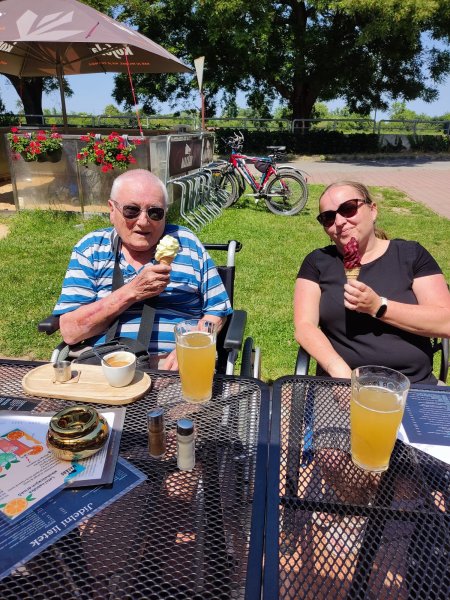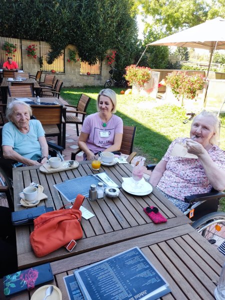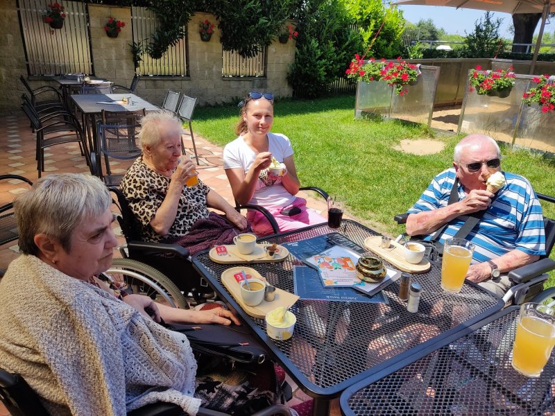 Teplé letní dny přímo vybízejí k posezení venku, ale když jsou už moc teplé, je potřeba se také zchladit. Mezi pravidelné cíle klientů Domova pro seniory Uherské Hradiště proto patřila zahrádka nedaleké restaurace Masaro. Toto místo se stalo oblíbeným cílem vycházek, protože nabízí příjemné prostředí a možnost osvěžení, kde si každý přijde na své. Někdo si dopřeje sladkou zmrzlinu nebo osvěžující pohár, jiný si vychutná sklenku piva, vína či šálek dobré kávy. Společné chvíle mimo domov přinášejí nejen radost, ale i možnost setkávání a sdílení zážitků. Pobyt na čerstvém vzduchu, změna prostředí a možnost volby oblíbeného občerstvení podporují pocit samostatnosti a zvyšují kvalitu života.