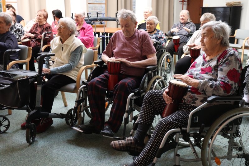 Kulturní místností Domova pro seniory Uherské Hradiště se rozléhaly bubny! V rámci muzikoterapie nás navštívila skupina „Bubny pro vás“ a společně s klienty jsme se ponořili do rytmu hudby.