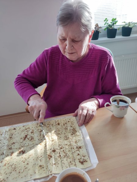 Klienti domova pro seniory v Uherském Hradišti si udržují své schopnosti a soběstačnost mimo jiné prostřednictvím běžných každodenních činností. Jednou z oblíbených aktivit je vaření a pečení, do kterého se senioři zapojují podle svých možností a chuti.