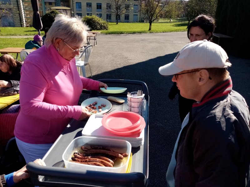 Jak vypadá podzim u nás v Domově na Buchlovské? Sbíráme letošní hojnou úrodu jablek a ořechů, moštujeme, pečeme štrůdl. Klienti pečou - pracovnice pomáhají. Dokud je hezky, užíváme slunce a grilujeme na zahradě, na co má kdo chuť. Naši kavárnu jsme už ale přesunuli do vestibulu hlavní budovy. Podzim si žádá dušičkovou výzdobu a spoustu světýlek. A aby kila nepřibývala, pravidelně cvičíme! S úsměvem a dle svých možností.