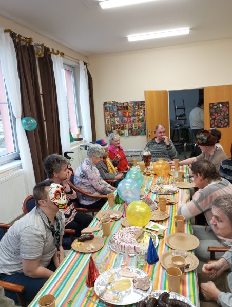 V Domově pro osoby se zdravotním postižením ve Starém Městě se domov proměnil ve veselou fašankovou slavnost. Klienti se nastrojili do rozmanitých masek a společně zpívali a tančili do rytmu lidových písní. Stoly se prohýbaly pod tradičními dobrotami – nechyběla jelita, jitrnice, tlačenka, ovar ani škvarková pomazánka s čerstvým chlebem a pivem. Sladkou tečkou byly masopustní koblihy a piškotový dort.