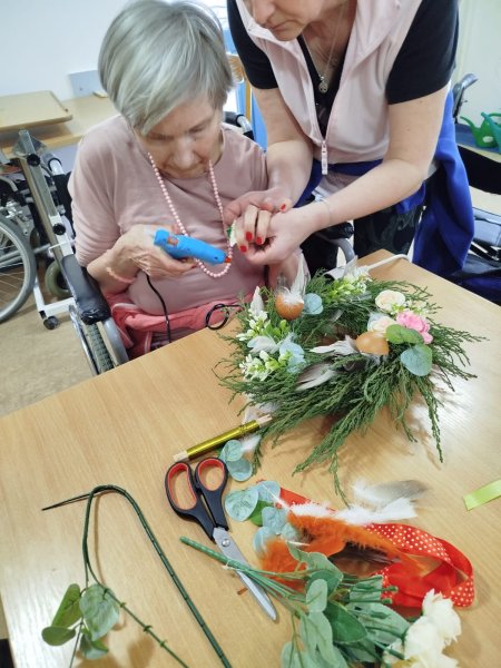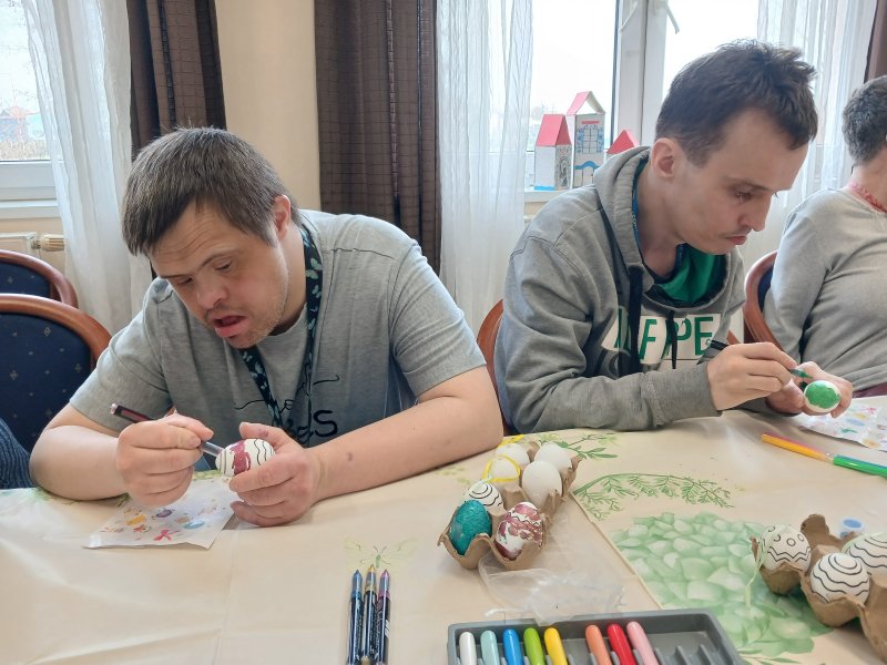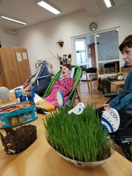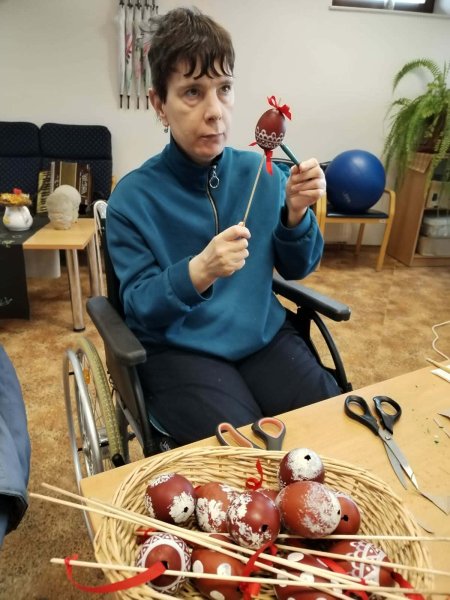 Také ve Velehradě na Buchlovské se klienti aktivně zapojili do velikonočních příprav. Společně vytvářeli tematickou výzdobu a nechybělo ani pečení tradičních velikonočních beránků. Součástí programu byla i dílna zaměřená na výrobu dekorací, která klientům umožnila rozvíjet kreativitu a podílet se na výzdobě svého domova. A v Kunovicích na Cihlářské klienti společně s pracovnicemi rovněž vyráběli velikonoční přáníčka a dekorace a měli možnost vyzkoušet si různé výtvarné techniky. I zde se potvrzuje, že právě zapojení do smysluplných činností přináší radost i pocit užitečnosti.