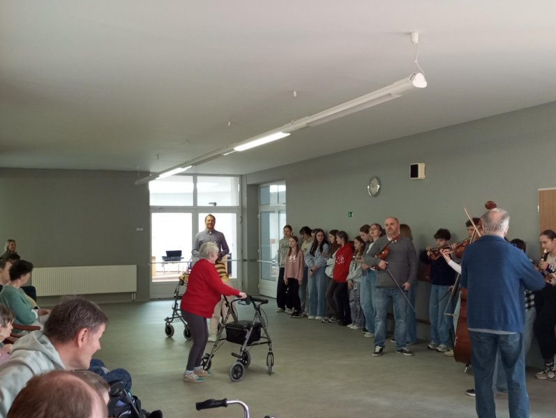 Do Domova pro osoby se zdravotním postižením ve Starém Městě dnes zavítali žáci a učitelé ze ZŠ Staré Město, aby společným zpěvem a hrou na housle připomněli blížící se jaro a Velikonoce. Klienti si vystoupení náramně užili – živá hudba je nadchla natolik, že se někteří sami nadšeně zapojili a gesty předváděli hru na nástroje i zpěv. Za toto milé setkání patří škole poděkování.