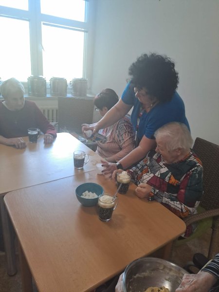 V uplynulých dnech navíc připravili pracovníci pro klienty kouzelné předvelikonoční posezení, které zaplnilo celou kavárnu sváteční atmosférou. Společně se pustili do výroby tradičních kraslic, pečení velikonočních beránků i sladkých jidášů. Klienti se s nadšením zapojili do příprav i zdobení a pod jejich rukama vznikaly krásné výrobky. Aktivizační pracovnice navíc klientům ukázaly různé techniky – od pletení pomlázek až po zdobení kraslic voskem. Příjemnou tečkou za společným tvořením byla voňavá káva a čerstvě upečené dobroty.