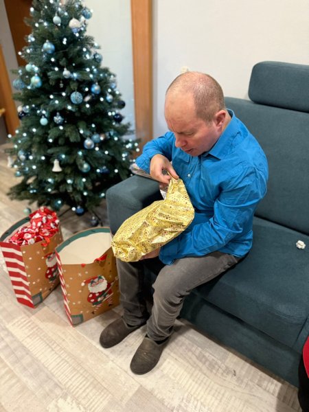 Po večeři přišlo na řadu i to, na co se těší snad každý – rozbalování dárků. Pro klienty jsou takové okamžiky často víc než jen o samotném balíčku. Jsou o pozornosti, o pocitu, že na ně někdo myslí, a o sdílené radosti, která se v tu chvíli přenáší napříč celým domovem.