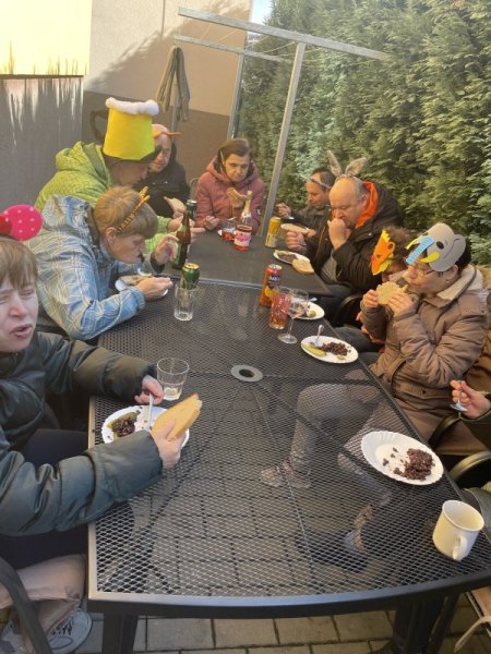 Masopust je období veselení se, hodování a pití. Pracovnice s klienty přichystali Masopust na Chráněném bydlení - Rostislavova. Nechyběl pořádný kotlík na ovar, pekla se obcházka a smažily se domácí koblížky. Klienti přikládali pod kotlíkem a klientky válely těsto na koblížky a následně s pracovnicemi smažily. K dobrému jídlu patří dobrá nálada a ta v žádném případě nechyběla.  Každý klient měl masku, která k Masopustu zkrátka patří.  K hodování hrála dechovka, i když jen z notebooku, na zahradě se linula velmi dobrá nálada.  Všichni klienti a pracovnice zpívali, hodovali a akci si moc užili.