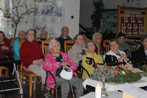 V předvánočním čase je vždycky co dělat. Je to doba příprav a těšení se na Ježíška. I my jsme se pilně připravovali na Vánoce. Pekli jsme perníčky, tvoříli vánoční přáníčka, zdobili adventní věnce, které nám požehnal náš pan kaplan. Každý pátek až do Vánoc jsme na něm zapálili jednu svíčku jako připomínku blížících se nejkrásnějších svátků v roku. A nesmělo u toho chybět naše oblíbené zpívání adventních i lidových písní.