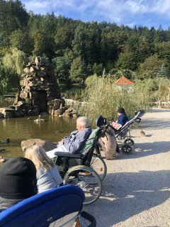 Klienti si společně s personálem užili krásnou podzimní vycházku na Smraďavku. Prošli se kolem rybníka, kde nakrmili kačeny a labutě, poseděli na lavičkách a vychutnali si poslední teplé sluneční paprsky. Atmosféra byla pohodová, plná úsměvů a příjemných rozhovorů.