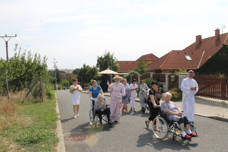 Svátek narození Panny Marie, který připadá na začátek září jsme oslavili s našimi klienty již tradiční Mariánskou poutí. Zahájena byla procesím k Mariánskému sloupu nad naším domovem a pokračovala společnou bohoslužbou slova, kterou sloužil  kaplan pan Pavel Franta. A jako při každé správné pouti nesměla chybět ani tradiční pouťová zábava. Naši klienti si mohli vyzkoušet střelbu ze vzduchovky na terč, ochutnat cukrovou vatu. Měli možnost zakoupení si domácích  produktů jako např. pečené čaje, med, pouťové perníky. Své výrobky nám nabízela Chráněná dílna Lidumila, Karmelitánské knihkupectví z Velehradu, paní Struhová přinesla výrobky z bylinek a přírodní kosmetiku. K tomu všemu jsme si dopřáli výborné grilované pochoutky a na harmoniku nám zahrál pan Zdeněk Jakša  z Osvětiman. Všem ze srdce děkujeme.