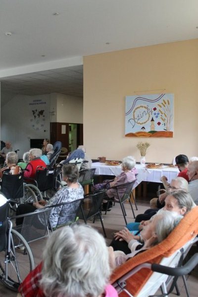Páteční odpoledne si klienti DS a DZR Buchlovice mohli užít Dožínkové oslavy. K poslechu hrála úžasná cimbálová muzika pod vedením pana kaplana. Málokdo se ke zpěvu známých písní nepřidal. Nechybělo ani občerstvení jako např. domácí chléb se škvarkovou pomazánkou či tradiční koláče. Všichni klienti si akci užili a pochvalovali. Plni dojmů se pak vraceli na své pokoje.