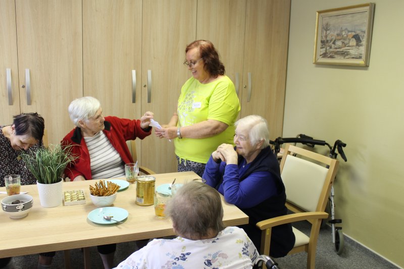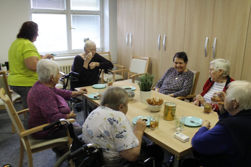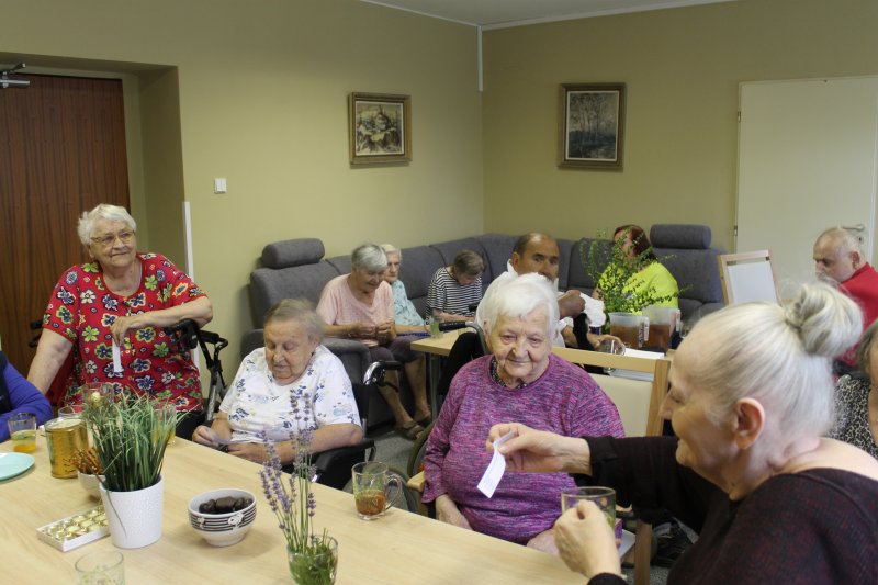V těchto horkých letních dnech si rádi zpříjemníme odpoledne  osvěžujícími limonádámi. Pro klienty jsme připravili ochutnávku různých druhů čajů a domácích limonád. Nechyběl ani sladký zákusek – čokoládový dezert se šlehačkou, který všem udělal velkou radost. Mnozí z nás se cítili jako v cukrárně a  atmosféru plnou pohody a klidného spočinutí umocnila česká hudba 70. a 80. let, která vyvolávala příjemné vzpomínky. Součástí odpoledne byla i zábavná poznávací hra, během níž klienti odpovídali na otázky ze života. Forma byla hravá a odlehčená, což přispělo k dobré náladě i k tomu, že se o sobě navzájem dozvěděli něco nového. Na závěr si personál s klienty popovídal a užili si pohodovou chvilku.