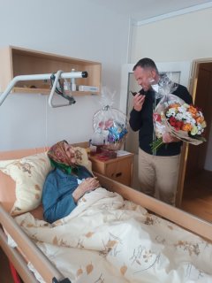 Po letošní lednové oslavě 100. narozenin a oslavě 99. narozenin minulý měsíc se tento týden slavilo další významné jubileum u paní Anny a to opět rovných 100 let. Skromná klientka si nepřála žádnou oslavu, proto se gratulanti střídali u ní na pokoji. Dveře se ten den opravdu netrhly. Kromě rodiny a zaměstnanců domova na klientku nezapomněl ani starosta klientčiny rodné obce Jalubí, zástupci ředitelství Sociálních služeb Uherské Hradiště, města Uherské Hradiště a ČSSZ. Klientka byla ze záplavy gratulací dojatá a s každým gratulantem s laskavostí sobě vlastní promluvila. My jí z celého srdce přejeme, aby byla stále spokojená a v dobré náladě tak, jak ji všichni znají.