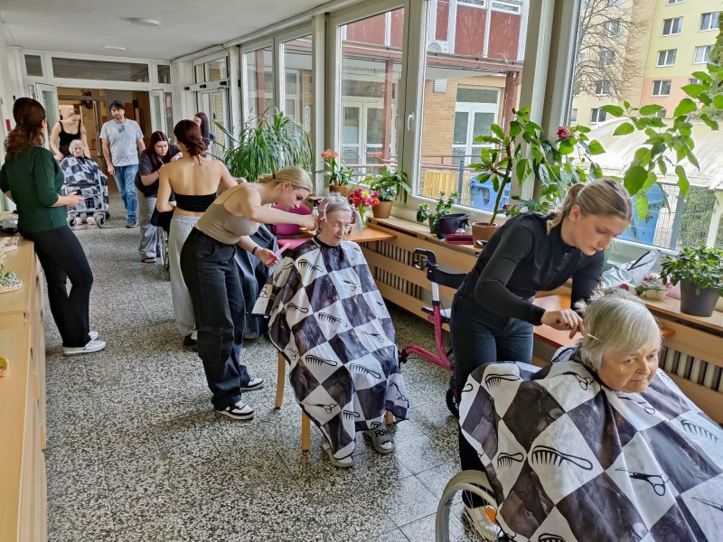 Dne 16.4.2026 se v Domově seniorů v Uherském Hradišti uskutečnil Den krásy. Naši klienti si mohli dopřát péči v podobě stříhání vlasů , lakování nehtů a úpravy obočí, o kterou se s laskavostí postaraly studentky oborů kadeřnice a kosmetika
