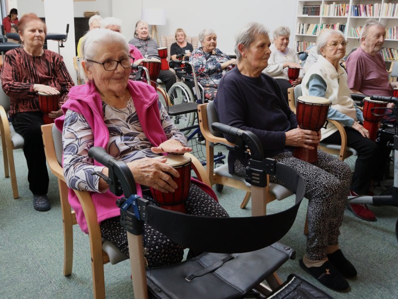 Kulturní místností Domova pro seniory Uherské Hradiště se rozléhaly bubny! V rámci muzikoterapie nás navštívila skupina „Bubny pro vás“ a společně s klienty jsme se ponořili do rytmu hudby.