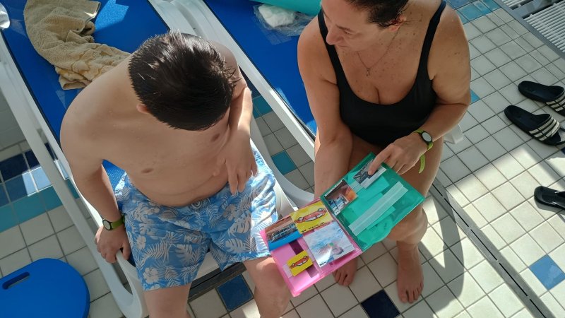 Návštěva aquaparku může být skvělým zážitkem, pro klienta, kteří používá augmentativní a alternativní komunikaci (AAK), je důležité vytvořit jasnou strukturu a předvídatelný průběh dne.  Aby byl den příjemný, přehledný a bez zbytečného stresu, využili jsme během celého programu různé pomůcky AAK – plánovací kalendář, denní plán, komunikační knihu i komunikační pásek. Díky těmto pomůckám dokáže klient lépe porozumět tomu, co se bude dít, vyjadřovat své potřeby a aktivně se zapojit do rozhodování.