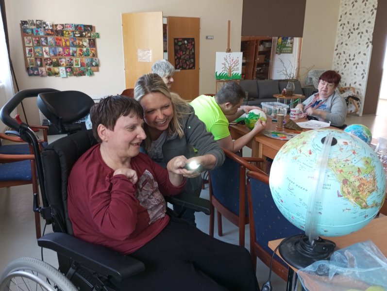 Dnešní Den Země jsme s klienty oslavili opravdu pestrým programem. Dopoledne jsme společně s klientkami upekly výborný dort a odpoledne se neslo v duchu smyslového poznávání. Pro klienty jsme připravili senzorickou dílnu plnou vůní, chutí a hmatových i zrakových vjemů. Někteří se pustili do barvení zeměkoule, jiní pečlivě plnili pytlíčky bylinkami nebo lovili mušle ze dna nádob. Na závěr nás čekala hádanka v podobě osvěžující vůně citrusů schované pod šátkem. Po vydařené práci jsme si společně vychutnali kávu a náš domácí dort.
