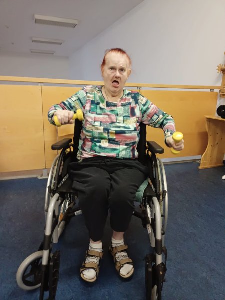 V našem domově mají osoby se zdravotním postižením každý den možnost zúčastnit se krátkého dopoledního zdravotního cvičení pod vedením aktivizační pracovnice. Tato pravidelná aktivita podporuje udržování jejich pohybových schopností, přispívá k lepší kondici a celkové pohodě.