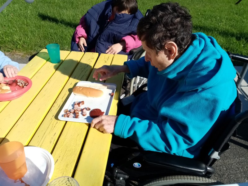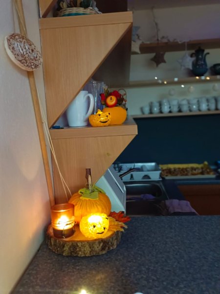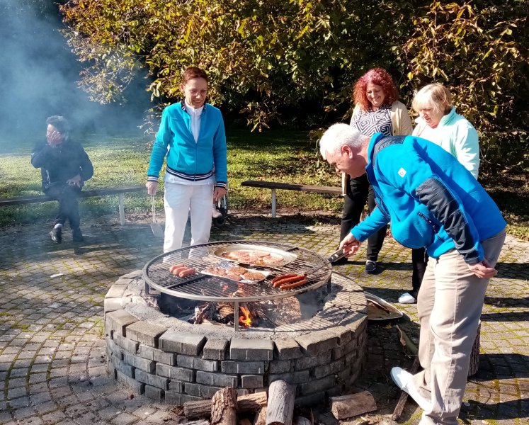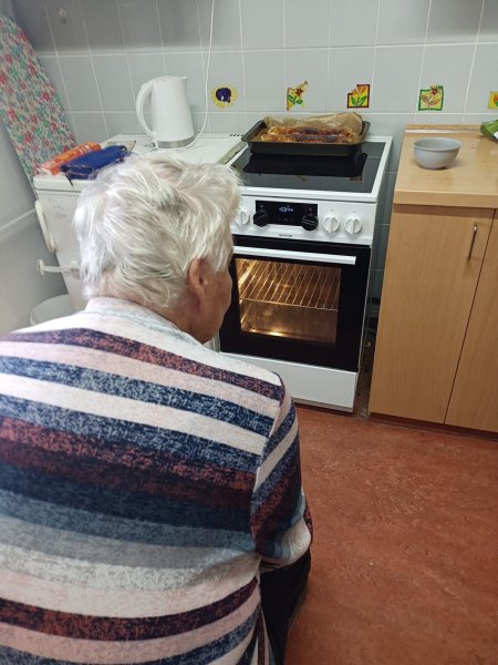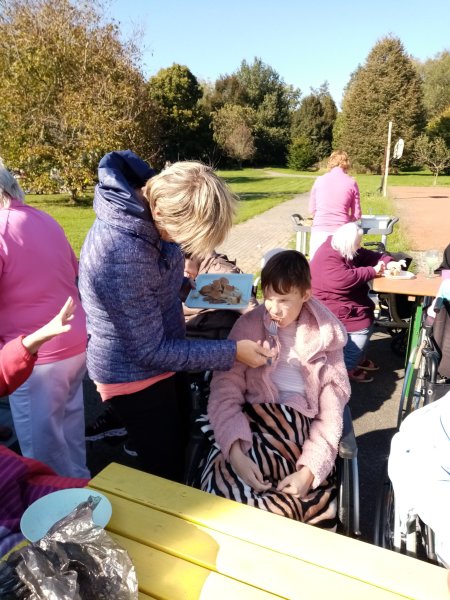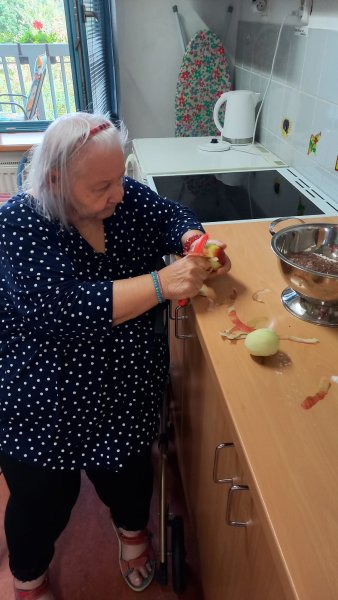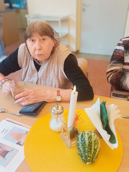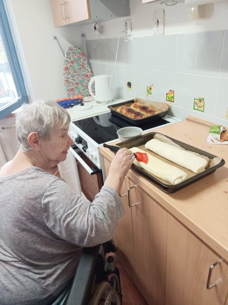 Jak vypadá podzim u nás v Domově na Buchlovské? Sbíráme letošní hojnou úrodu jablek a ořechů, moštujeme, pečeme štrůdl. Klienti pečou - pracovnice pomáhají. Dokud je hezky, užíváme slunce a grilujeme na zahradě, na co má kdo chuť. Naši kavárnu jsme už ale přesunuli do vestibulu hlavní budovy. Podzim si žádá dušičkovou výzdobu a spoustu světýlek. A aby kila nepřibývala, pravidelně cvičíme! S úsměvem a dle svých možností.