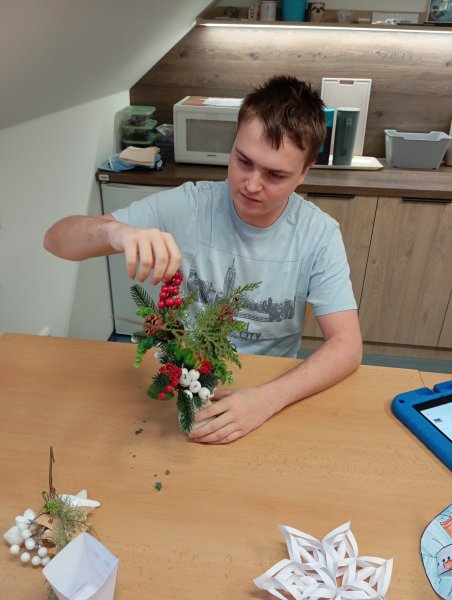 Adventní čas v odlehčovací službě je zpříjemňován tvořením, vánočním nakupováním, výrobou dobrot, prostě vším, co klienti dělají rádi a co je baví.