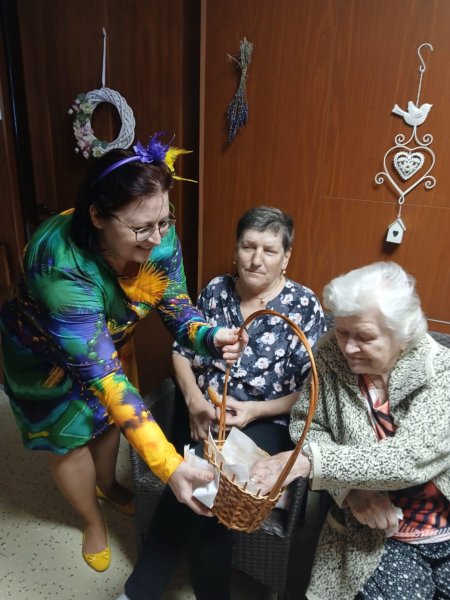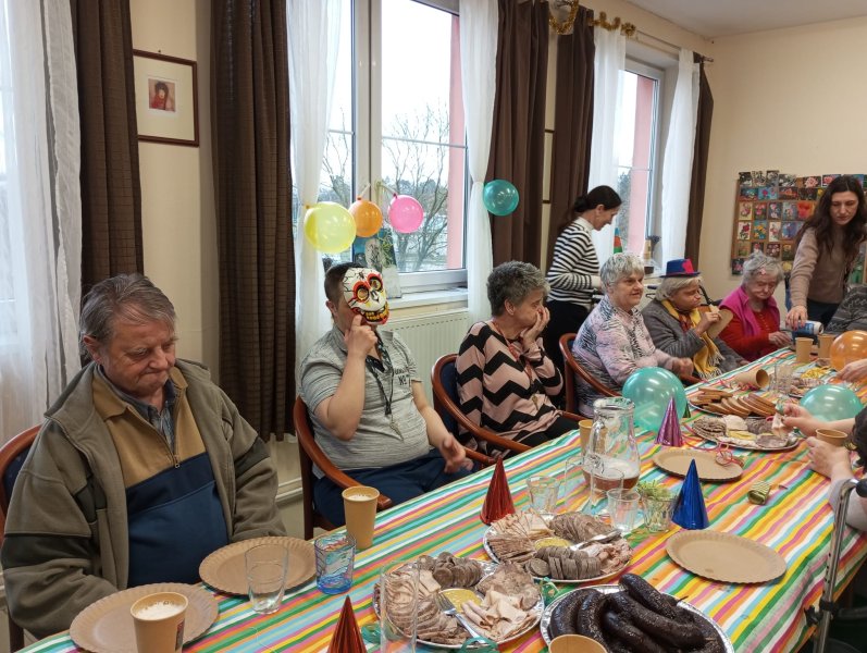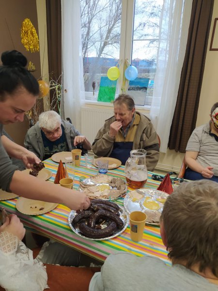 V Domově pro osoby se zdravotním postižením ve Starém Městě se domov proměnil ve veselou fašankovou slavnost. Klienti se nastrojili do rozmanitých masek a společně zpívali a tančili do rytmu lidových písní. Stoly se prohýbaly pod tradičními dobrotami – nechyběla jelita, jitrnice, tlačenka, ovar ani škvarková pomazánka s čerstvým chlebem a pivem. Sladkou tečkou byly masopustní koblihy a piškotový dort.