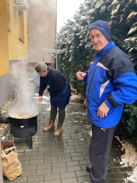 To v Chráněném bydlení Rostislavova se vařilo ve velkém stylu. Na stole nechyběla jatra, vařené maso, jelítkový prejt, zelí ani voňavé koblihy. Klienti se podíleli na přípravě podle svých možností a společné vaření se stalo nejen kulinářským zážitkem, ale i důležitou součástí nácviku samostatnosti.