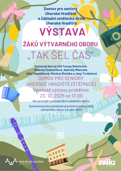 Domov pro seniory Uherské Hradiště a Základní umělecká škola Uherské Hradiště srdečně zvou na vernisáž výstavy s názvem "Tak šel čas" žáků výtvarného oboru.