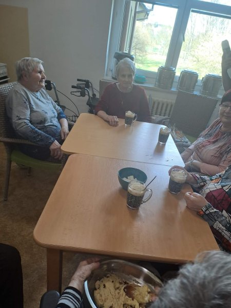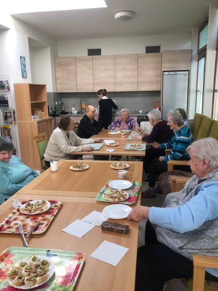 V uplynulých dnech navíc připravili pracovníci pro klienty kouzelné předvelikonoční posezení, které zaplnilo celou kavárnu sváteční atmosférou. Společně se pustili do výroby tradičních kraslic, pečení velikonočních beránků i sladkých jidášů. Klienti se s nadšením zapojili do příprav i zdobení a pod jejich rukama vznikaly krásné výrobky. Aktivizační pracovnice navíc klientům ukázaly různé techniky – od pletení pomlázek až po zdobení kraslic voskem. Příjemnou tečkou za společným tvořením byla voňavá káva a čerstvě upečené dobroty.
