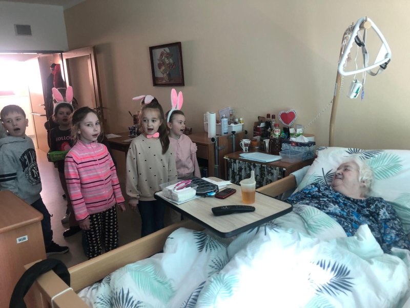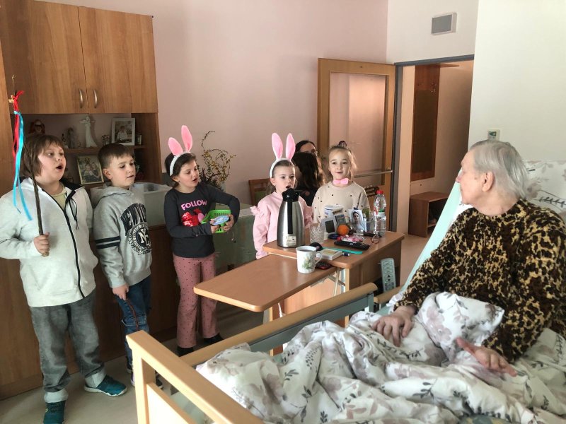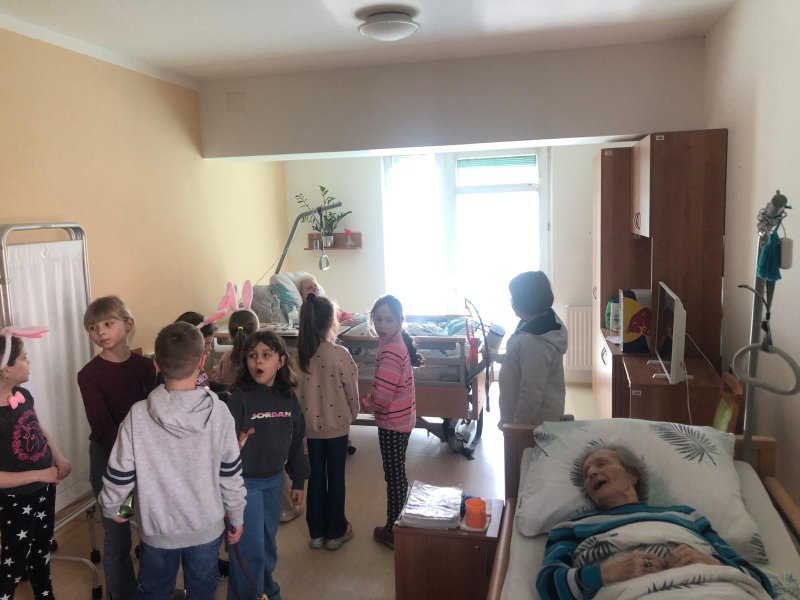 Podobně milé setkání plné jarní atmosféry zažili také klienti v Domově pro seniory v Uherském Ostrohu, kam zavítaly děti ze ZŠ Uherský Ostroh s velikonočním vystoupením. Děti přednesly básničky, zazpívaly písničky a každého klienta obdarovaly vlastnoručně vyrobeným přáníčkem Nezůstalo však jen u společného programu – děti navštívily také některé klienty přímo na pokojích, kde jim zazpívaly a osobně předaly přání. Toto pozorné gesto přineslo mnoho radosti a dojetí. Klienti si vystoupení velmi užili a ocenili především jeho srdečnost a blízkost. Na příjemnou atmosféru navázalo společné posezení u kávy a jednohubek, které si klienti sami dopoledne připravili.