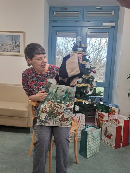 Po večeři přišlo na řadu i to, na co se těší snad každý – rozbalování dárků. Pro klienty jsou takové okamžiky často víc než jen o samotném balíčku. Jsou o pozornosti, o pocitu, že na ně někdo myslí, a o sdílené radosti, která se v tu chvíli přenáší napříč celým domovem.